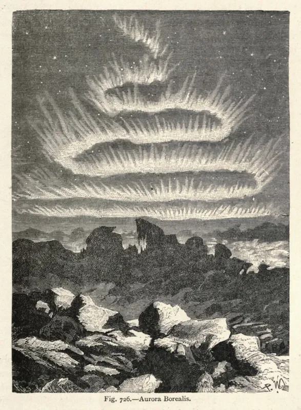 Aurora Borealis 19th Century Engraving from Popular Scientific Recreations in Natural Philosophy, Astronomy, Geology, Chemistry by Gaston Tissandier